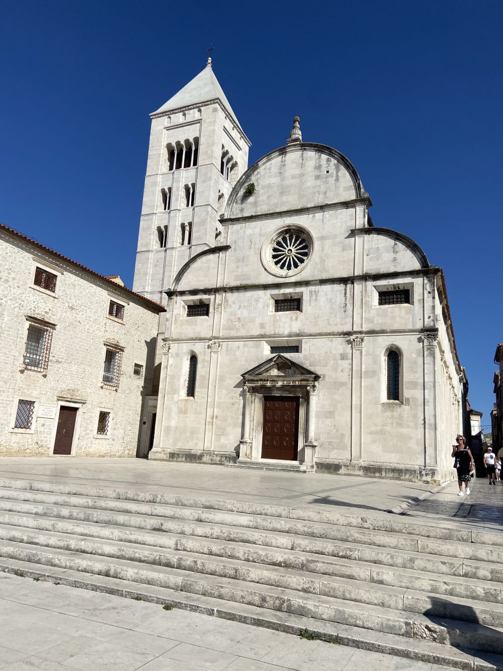 Angeschlossen an die Kirche ist die Kathedrale von Zadar, deren Turm im gotischen Baustil einen ausgezeichneten Blick über die Alt Stadt ermöglicht.