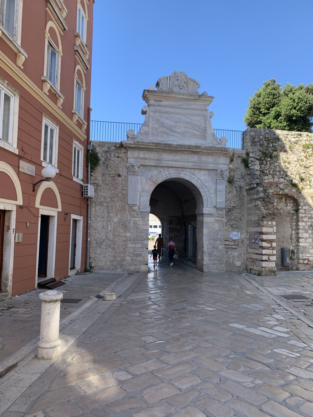 Ein Blick auf das Steintor in die Altstadt von Nin